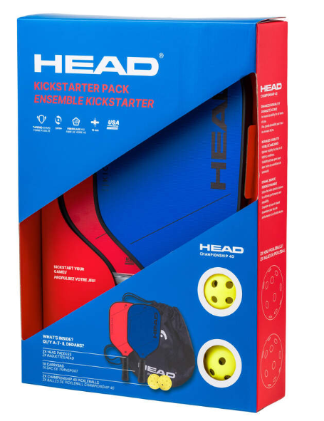 The HEAD Kickstarter Pack is the perfect choice for beginners. It features two Kickstarter Plus paddles designed for comfortable handling and reliable performance, along with two HEAD Championship 40 pickleballs. A lightweight carry bag makes storage and transport simple. With this complete starter set, you’ll have everything you need to step onto the court and kickstart your game.