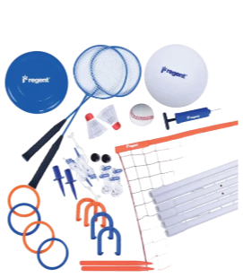 • 4 X VINYL HORSESHOES, 4 X VINYL RINGS, 9" FLYING DISC, 3" SPLASH BALL